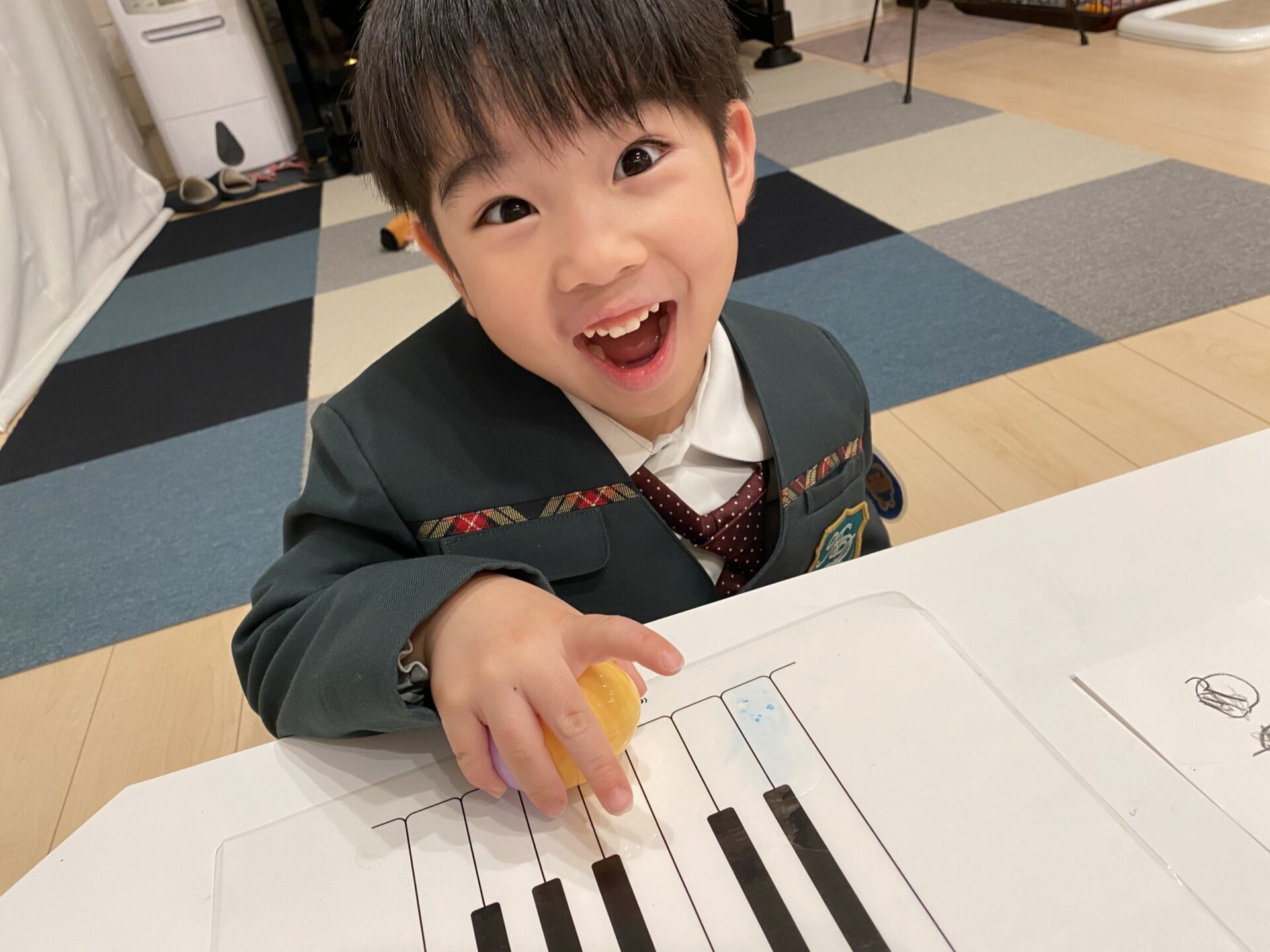 初めての場所でも、ニコニコ笑顔で時より音楽に合わせて体を動かして楽しそうに参加してくれました!ピアノにも興味津々♪