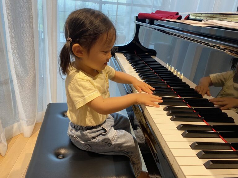レッスンはすべて、ピアノの即興演奏で行っています。毎回聞こえる様々な音色を聞き取って表現することで、「聴く耳を」を育てることを大切にしています。